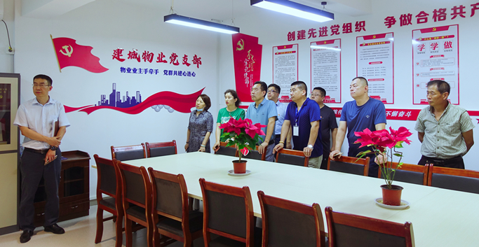 話黨建、共交流、拓思路、謀發(fā)展。為進(jìn)一步加強(qiáng)黨建互動,積極交流先進(jìn)經(jīng)驗(yàn),切實(shí)提高集團(tuán)黨建工作水平,7月21日,集團(tuán)黨委副書記孫曉東同志、黨委委員呂文秀同志帶隊,組織集團(tuán)黨務(wù)工作者來到建城物業(yè)公司,學(xué)習(xí)觀摩紅色物業(yè)黨建陣地。
