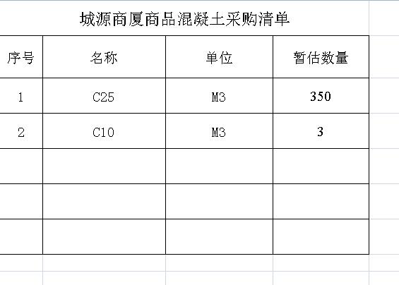 城源商廈室外景觀(guān)工程商品混凝土采購(gòu)