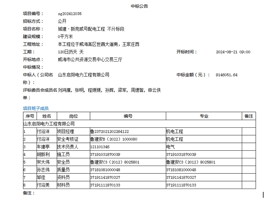 城建 新苑貳號(hào)配電工程 不分標(biāo)段發(fā)布時(shí)間:2024/8/27 11:10:02  作者:威海城建集團(tuán)  文章來(lái)源:威海城建集團(tuán)  瀏覽次數(shù):