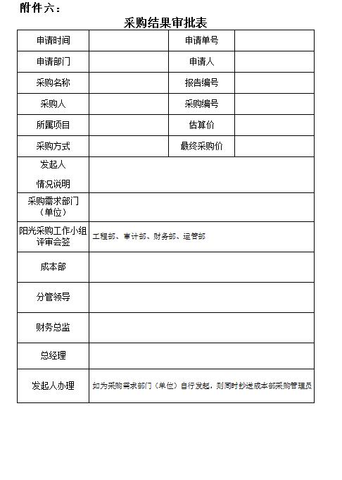 8.采購評審小組形成采購報告,由成本部或需求部門(單位)根據(jù)需要發(fā)起《采購結(jié)果審批表》,按照評審結(jié)果確定成交供應(yīng)商;
